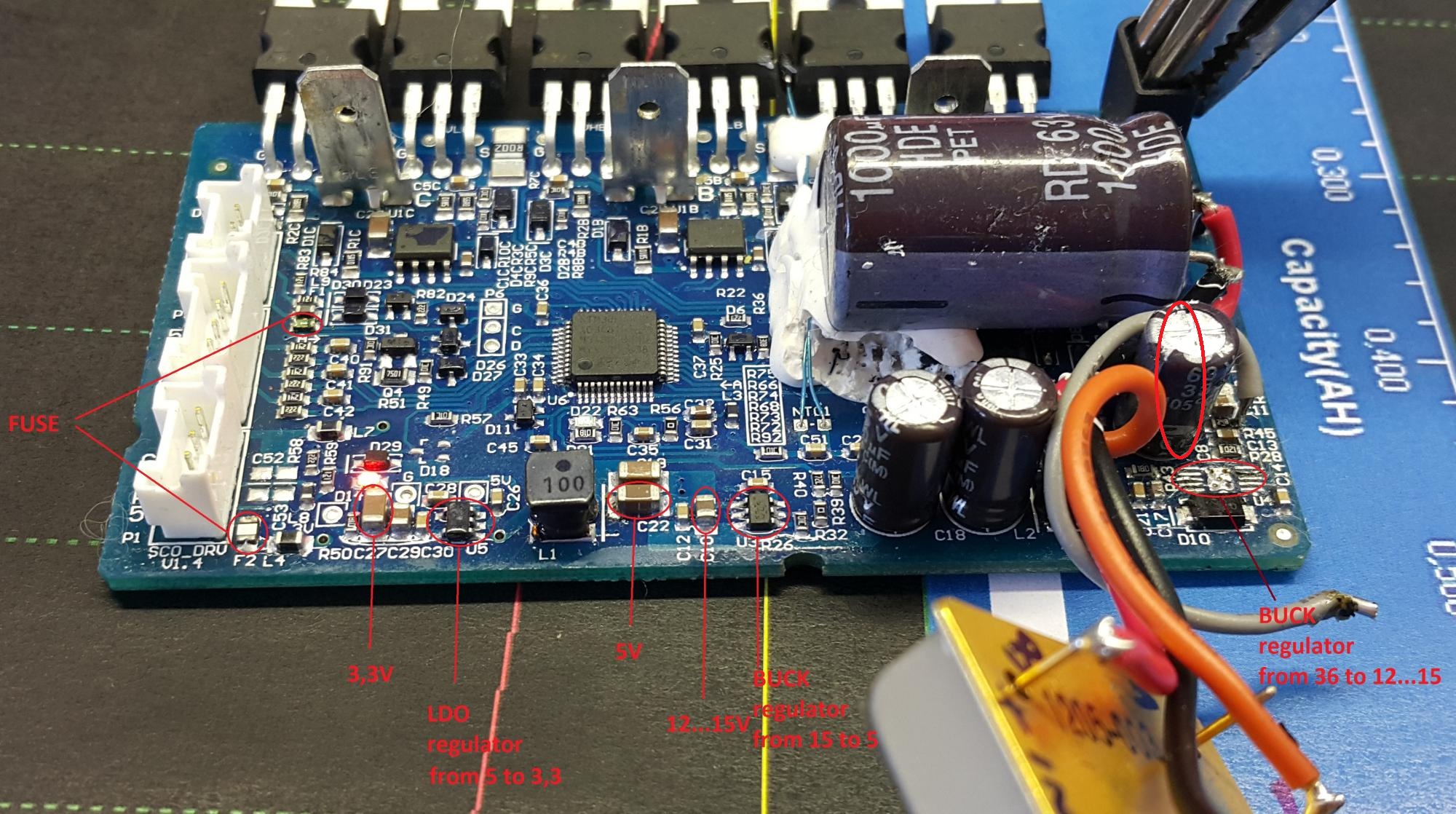 поэтому перед включением необходимо прозвонить на предмет КЗ конденсаторы которые обведены кружком