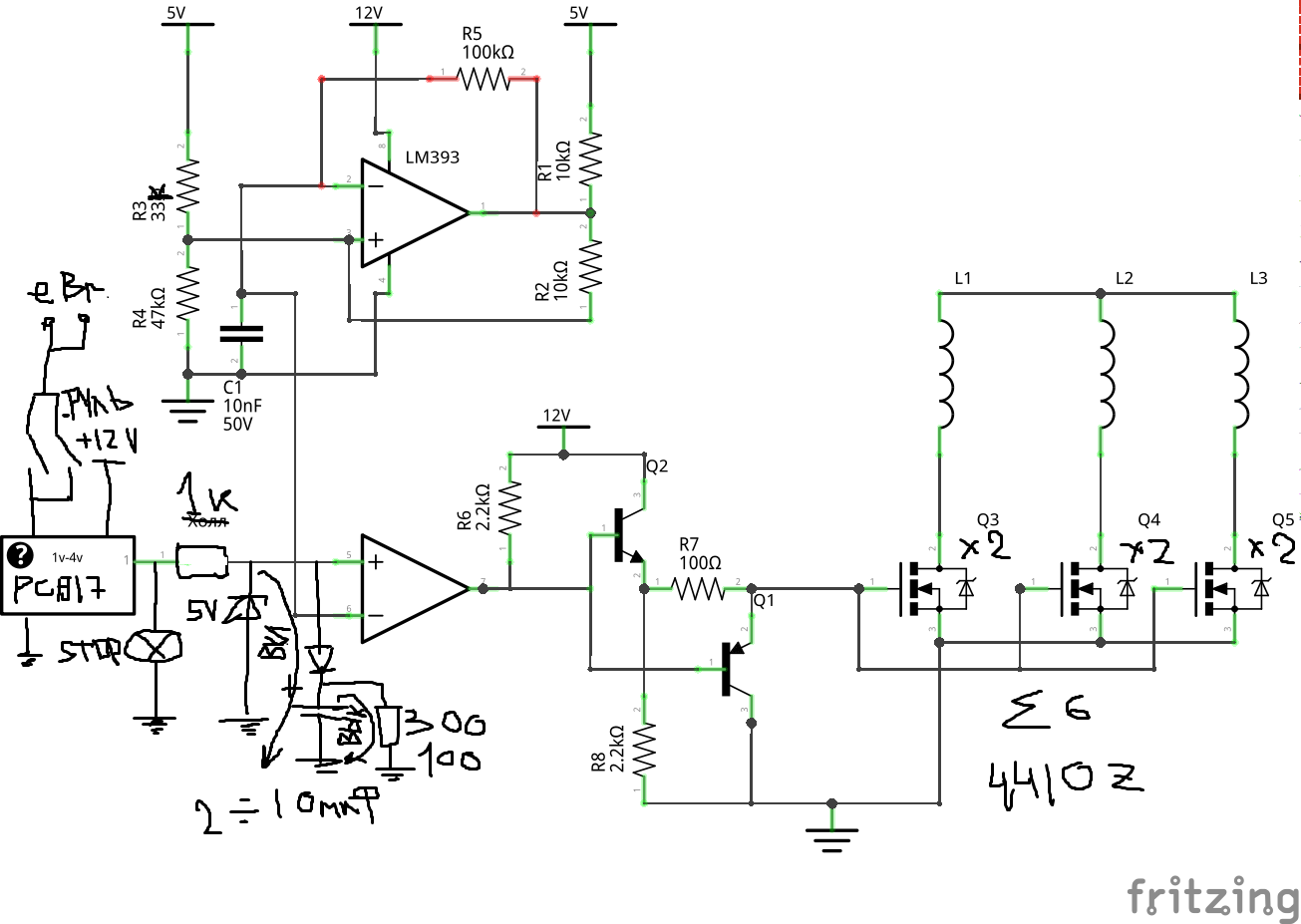 Смущает тот момент, что  контроллер имеет свойство тормозить  колесо при движении в обратную сторону.  Даже если замкнуть на минус вывод EL (т.е.  отключить контроль), все равно тормозит.  Как бы это его свойство на вызвало конфликт с принудительным открытием нижних ключей... :bw: