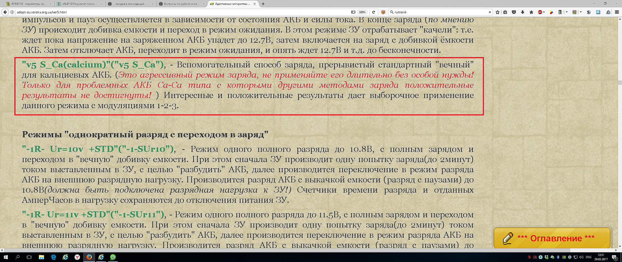 это я знаю, только в моем случае напряжение не летит вверх, акб разряжен, напряжение в паузе было 13.2-13.3, в подаче тока 13.4-13.5. (не по дисплею с опозданием, а по мультиметру в режиме онлайн) Т.е. о никаких отсечках при превышении 14.5 не может быть   и речи. Клеммы АКБ зачищены до зеркального блеска, клеммы зарядки затянуты болтами. Все как положено и как в инструкции. С чего тогда она не может "зацепиться"?