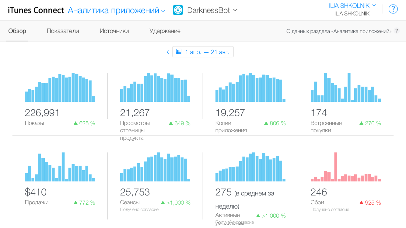 246 крешей приложения было за всю историю приложения (пик пришелся на конец мая в версии 1.2)