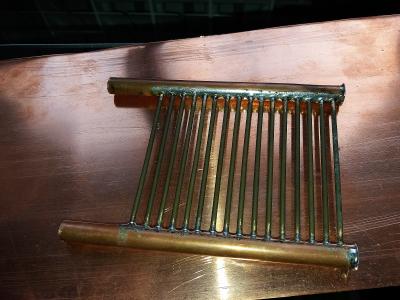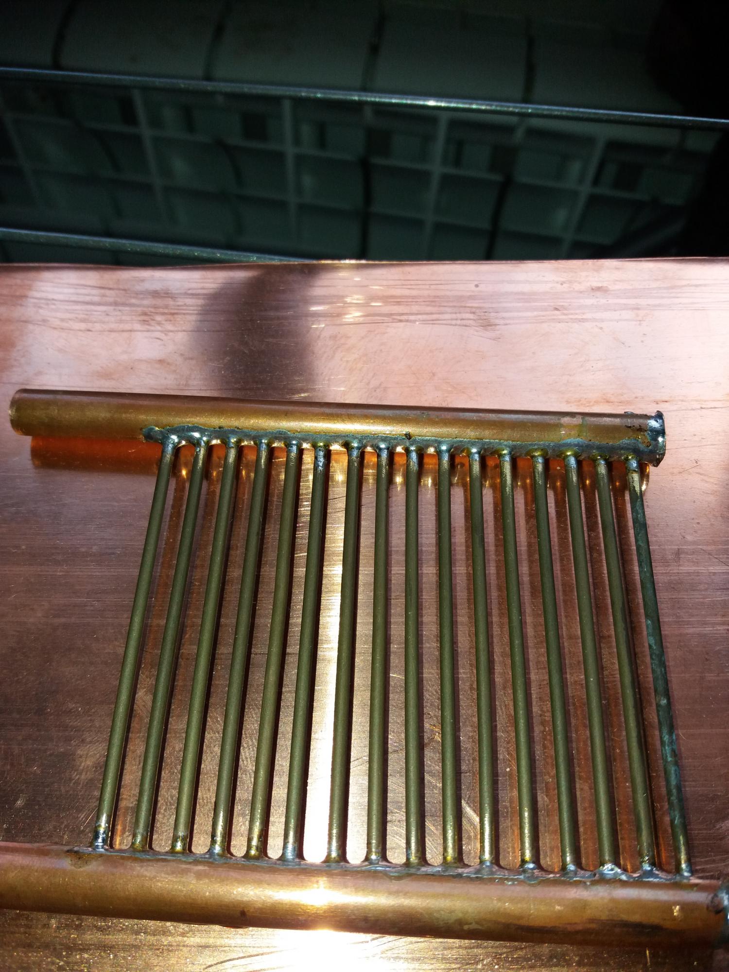 [user]max_x_20[/user], с кпд плохо. Не имеет смысла. Сначала нужно устранить явное узкое место, которым является теплопроводность стенок трубок. Либо их утончением, либо увеличением площади (количества трубок). Лучше второе, потому что теплопроводность кишок банок тоже ограничена. Если снимать с них тепло в одной маленькой точке, она просто не сможет через эту точку всё отдать.  У воды запас по теплоемкости имхо еще предостаточный. Какая дельта температур воды между входом и выходом из батареи? И между выходом и температурой банок? И какой расход воды? Можно посчитать снимаемую тепловую мощность водой и сравнить ее с выделяющейся на банках. Потом решать куда и как.