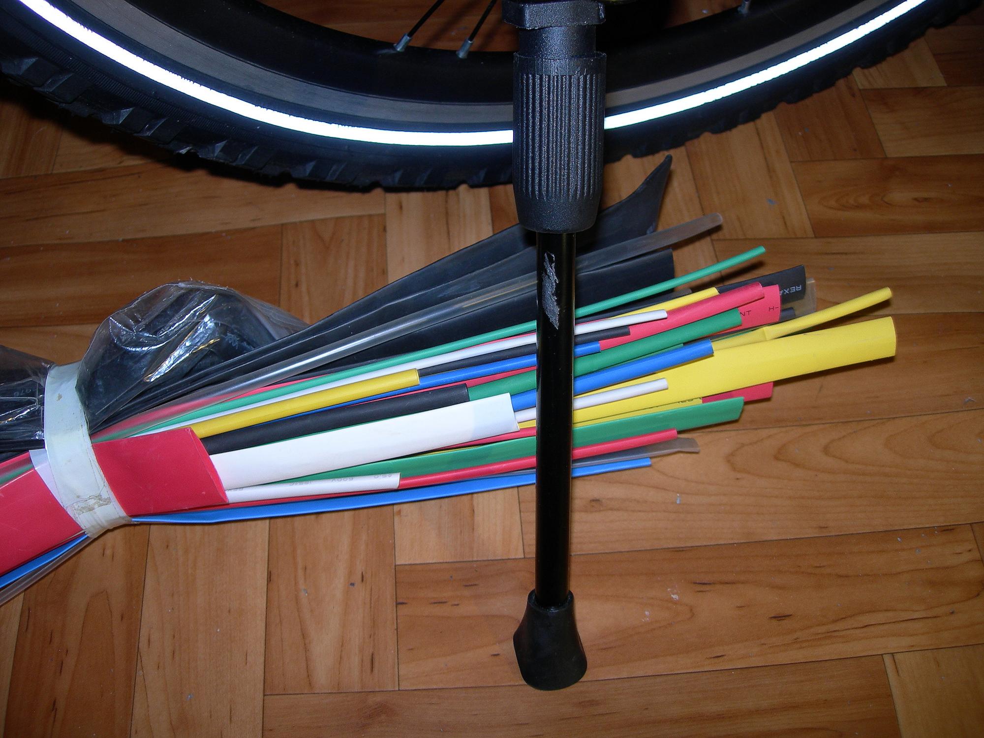 Термоусадку подобрал под цвет рамы, пробку потом заменю на жёлтую или чёрную.