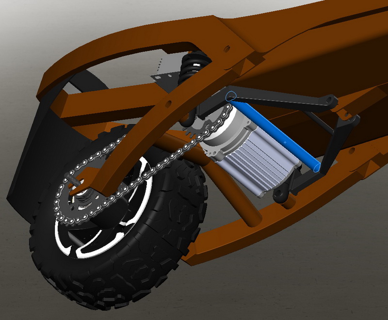 Хочется разместить мотор на раме, но тогда надо делать натяжитель цепи, а это потери КПД.