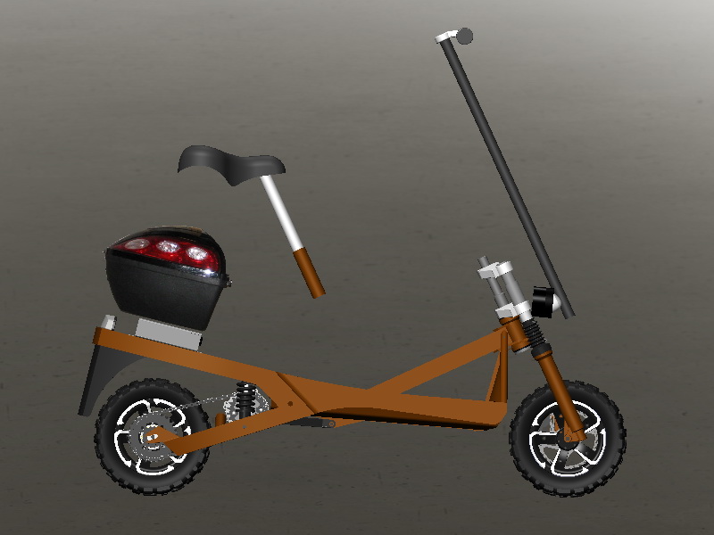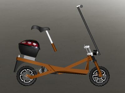 А что за амортизаторы? Ход у них не большой получается. Я бы в этой схеме, вытащил моноаморт велосипедный между ног. Как раз там есть куда ось переднюю разместить.