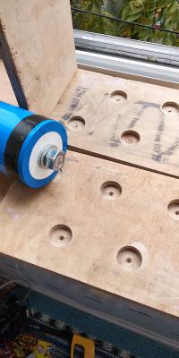 Пол часа - и из подножного материала корпус собран. Зв несколько приемов (дабы не перегреть электоды) срезаны лишние сантиметры с  алюминиевых болтов.Пришлось купить сверло на 22, высверлил в фанере 10-ке по 5мм колодцы.