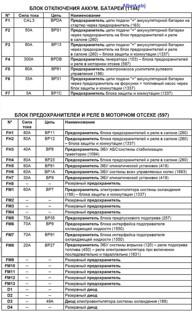 На французе много и на стартер есть - в блоке отключения АКБ на стартер стоит предохранитель CAL3 (стартер 2.2кВт). На генератор идет 300А (сам генератор на 210А). В общем: