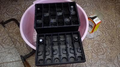 Ну а чё не выйдет, если есть дремель, перегородки вырежешь в два счёта, отмоешь с содой и шампунем для мойки машины, банки внутри к боку на 3М гель-скотч, выводы из оплётки массы (по две в параллель) в термоусадке без усадки, припаяешь к свинцовым выводам мощным паяльником на 200-250Вт. Балансир в коробочку определить. Залить весь объём монтажной пеной.