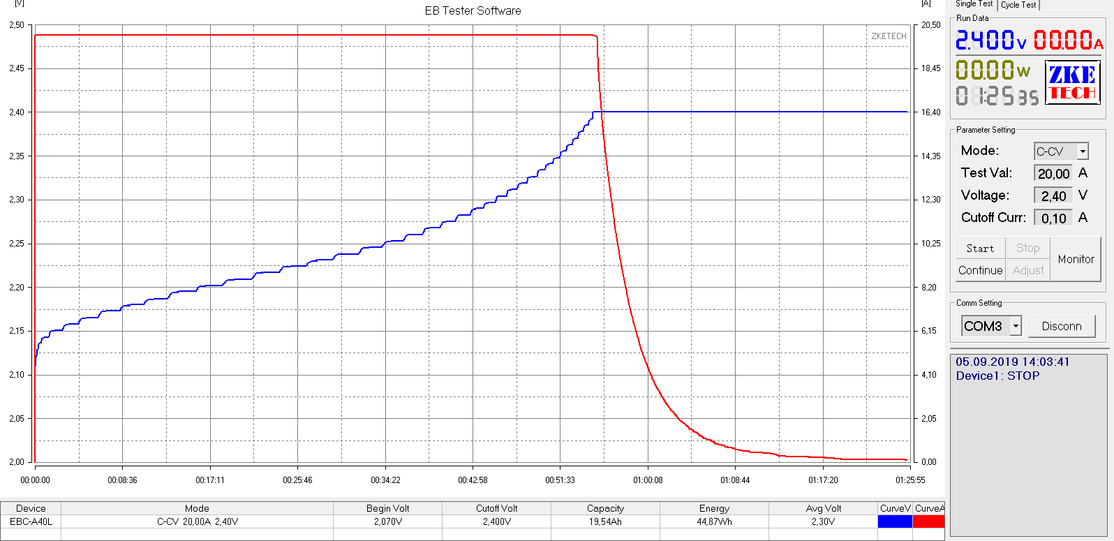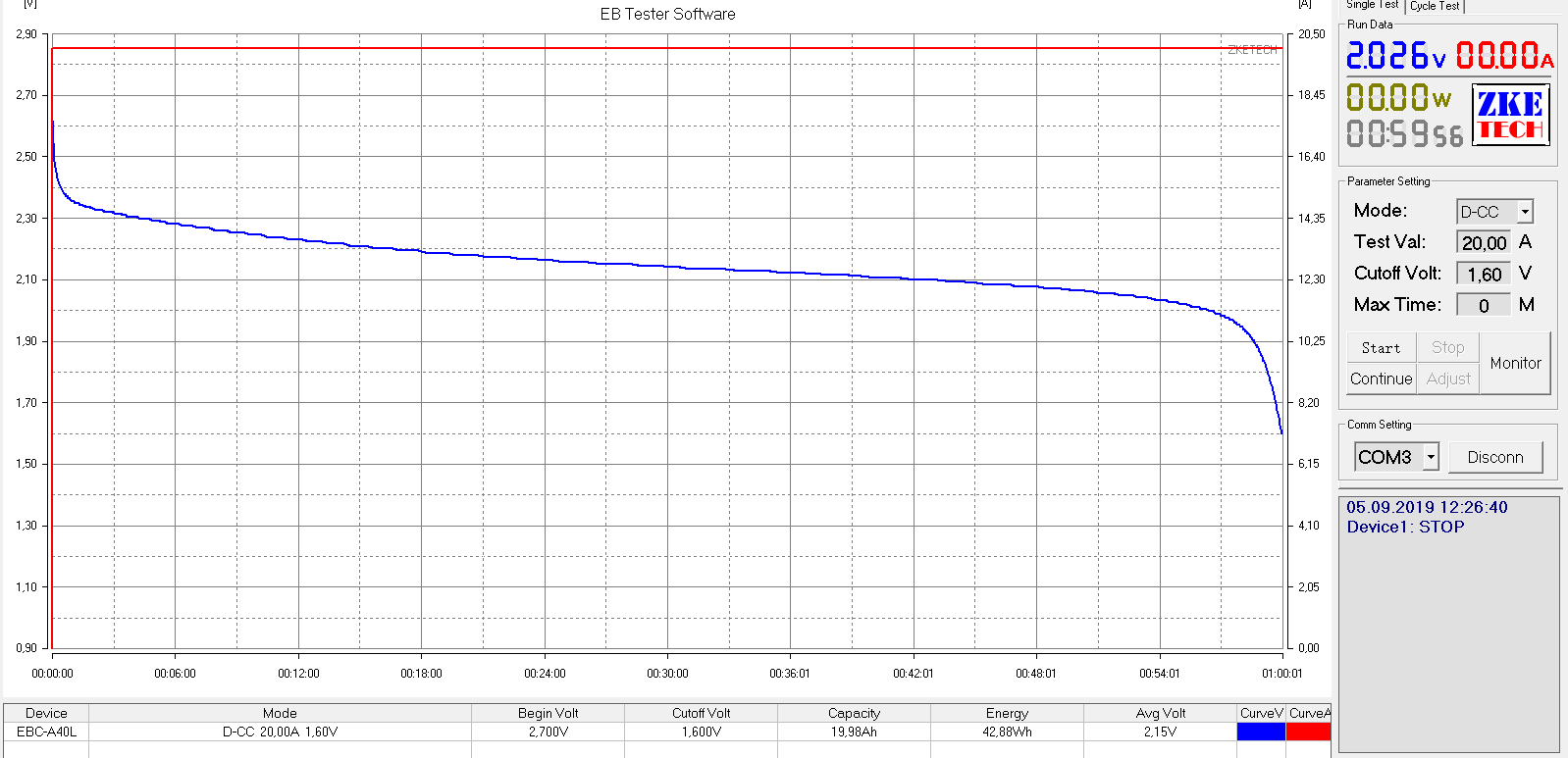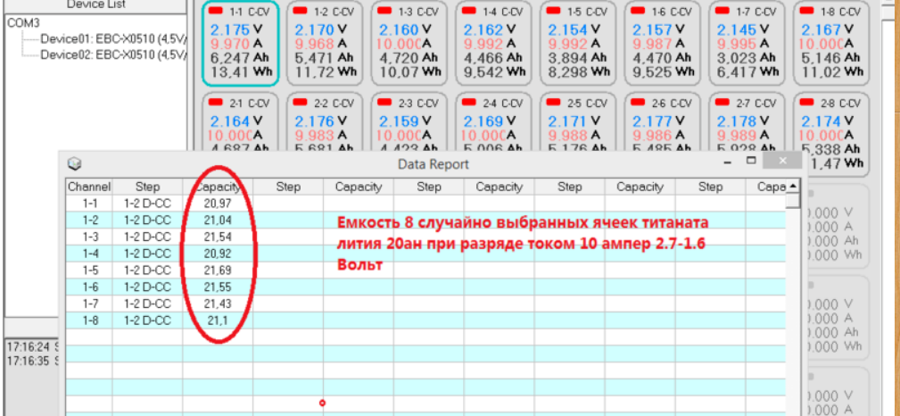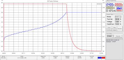 Разряд 20 Ампер 2.7-1.6 Вольт. Второй график заряд 20 Ампер после разряда 1.6-2.4 Вольт