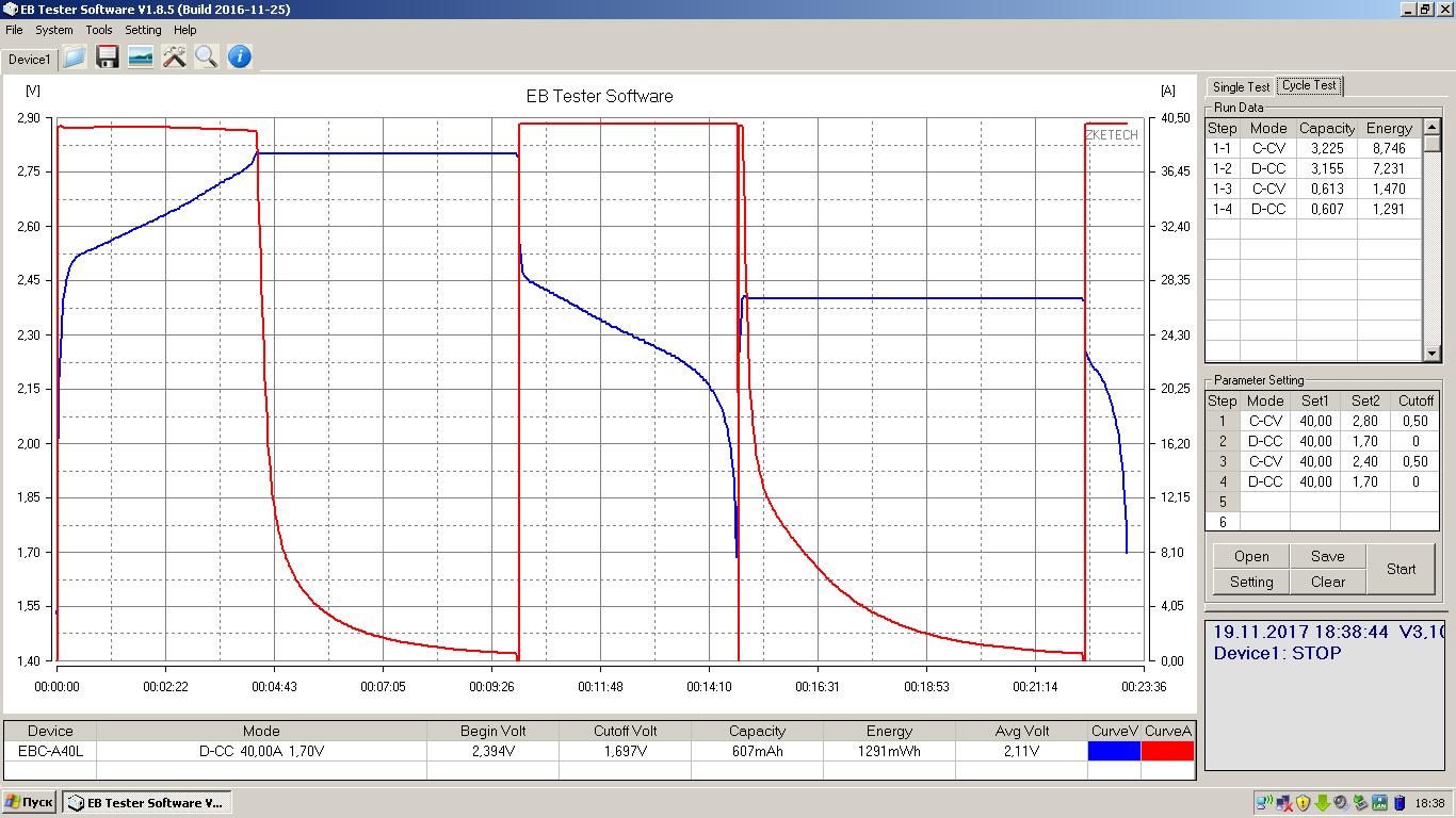 В общем  как то так.. Проведен цикл полноценной зарядки - получилось 3.2Ач, после чего цикл до 2.4в, получилось 0.6Ач.
