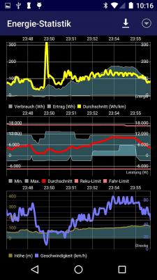 Весь режим заправки, поездки записывается в файлы, но и одновременно выводится на дисплей Андроида , который затем можно использовать и для контроля БМС и их настроек, профилей поездки (различных параметров) и выставлять ограничения, например для своих детей.
