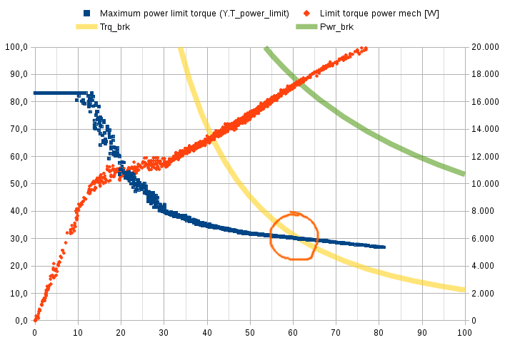 По предварительному анализу,  пиковый момент возможно поднять до 210 Нм и скорость увеличить до 107 км/ч. Контроллер ограничен пока на 250 А батарейного и 450 А фазного. Но как вы можете посмотреть, практически никогда за всё время поездки, не было достигнуто 240 А батарейного. Я пока нашел только одну точку с этим максимальным значением, хотя делал специально разгон с полным газом со старта и в процессе езды, и выходы на максимальную скорость. У оригинального же значения 250 А практически постоянно при даче полного газа.