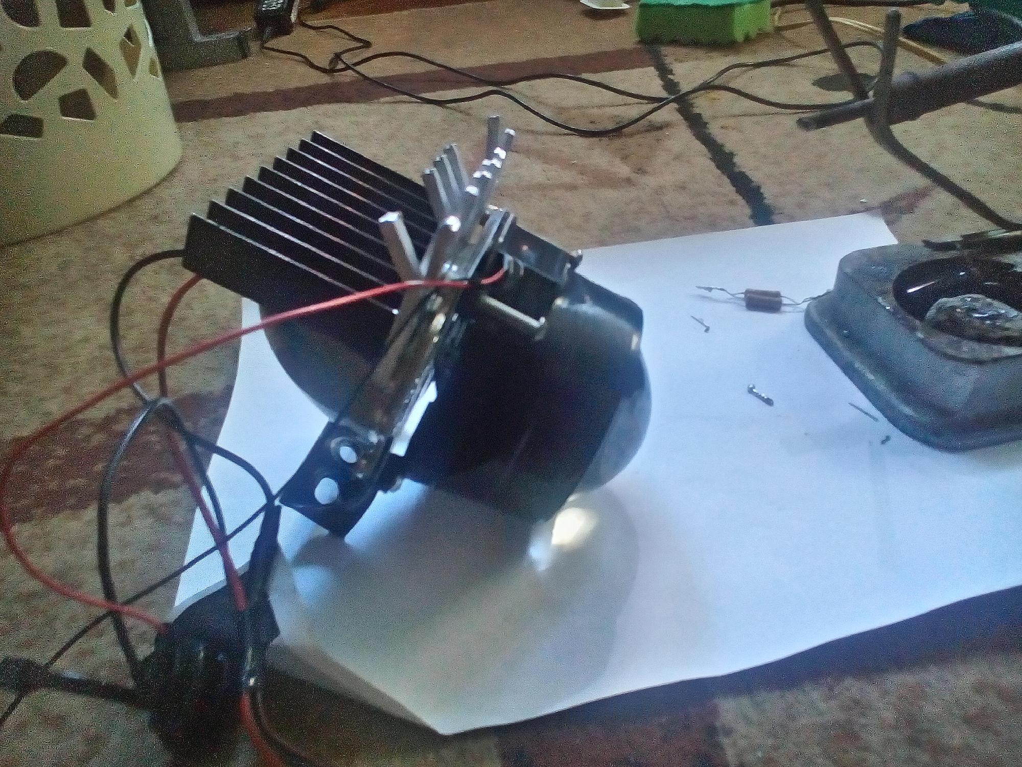 Бюджет 2 т.р. - ксеноновая фара 2.5 дюйма, круглая светодиодная матрица на 38 ватт (работает примерно на 15 ватт), плюс мелочевка: радиаторы, драйвер, ди-сишка для диода, т.к. ему надо 36 вольт.