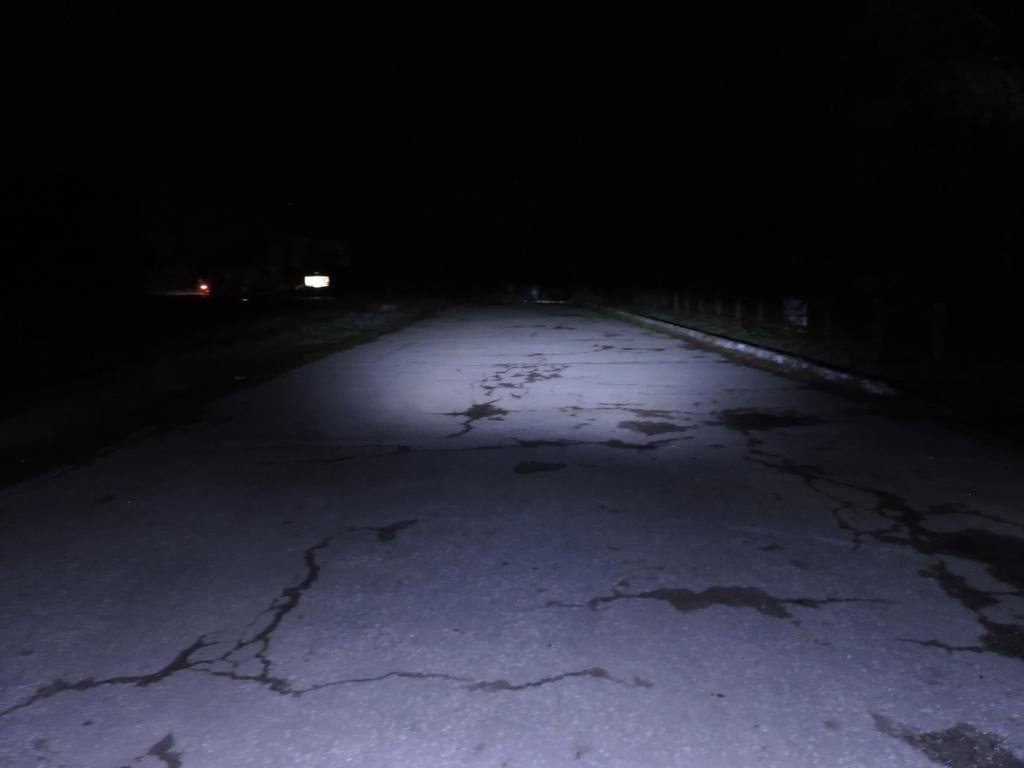 Интересная особенность. Включил сначала ближний - потребляет 170 мА, включил параллельно дальний - второй светодиод включился, но ток остался 170 мА, а яркость ближнего уменьшилась, выключил ближний, ток стал 350 мА, яркость обоих светодиодов увеличилась. То есть получается 3 режима - ближний, ближний + дальний в половину мощности, ближний + дальний в полную мощность. Правда для коммутации всех трех режимов нужен хитрый переключатель. Свет холодный, отдает синевой, но терпимо. СТГ четкая. Заливка оказалась неравномерная. Хорошо подсвечивает зону перед самым колесом, потом идет зона затемнения и на расстоянии яркое световое пятно. Ширина луча примерно как у SUFEMOTEC . Основное пятно заметно ярче, чем у Арктика, немного уступает SUFEMOTEC. Зона затемнения немного раздражает. Если б не она, вообще была бы конфетка. Но привыкнуть, думаю, можно. На фото человек на расстоянии 20 м.