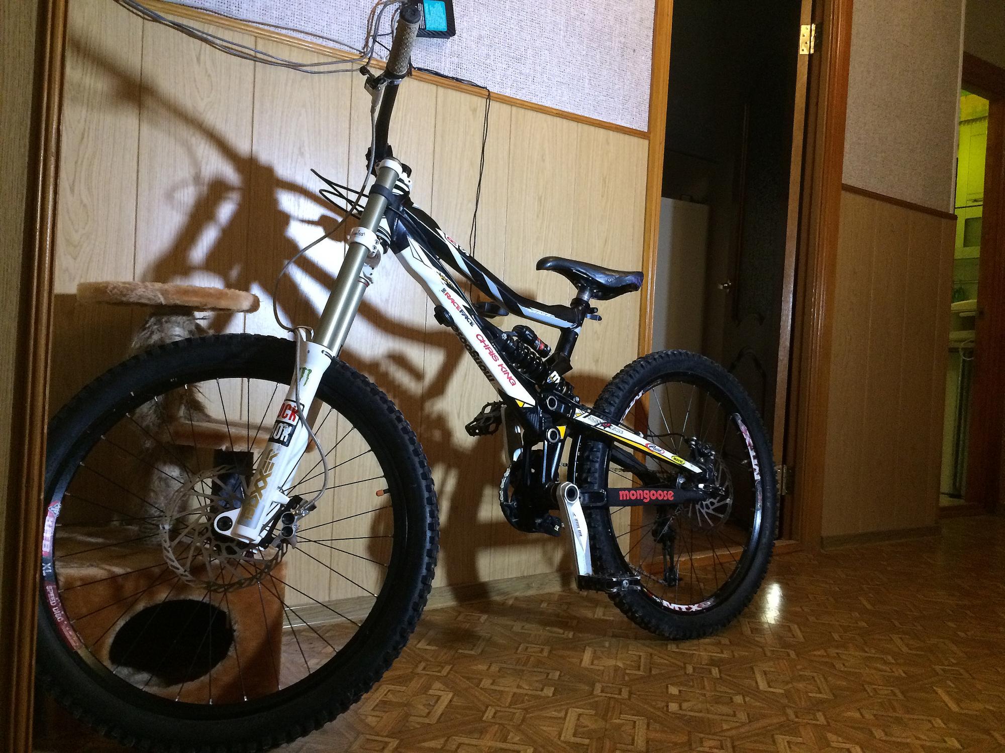 Не выдержал я и сорвался за этим велосипедом в Кбардино-Балкарию. Вот приехал домой только что. Немного расстроен, т к велосипед в объявлении был как просто Mongoose DH, а по фотографиям я сам уже решил, что это Boot'r. Тут расклад такой получился, что папа купил его своему сыну, а тот почти не катался, в Баксане гор нет, а в горы они выбирались всего пару раз и хочется верить. В общем парня забрали в армию, а папа его решил продать велосипед. Я приехал, а оказалось, что это не Boot'r, а Pinn'r. Получается велосипед старше, чем я думал, он выпущен в промежутке между 2009 и 2012. Я впал в небольшой ступор, но состояние радовало. Оказалось, что обвес совсем не родной стоит и, повисев на телефоне с разбирающимся в DH другом, я решил брать его, причем по довольно приятной цене для нашего региона. Кстати, после прочтения данного поста, выскажите свои мысли, какова адекватная цена для этого велосипеда? Я позже отвечу, почем его купил.