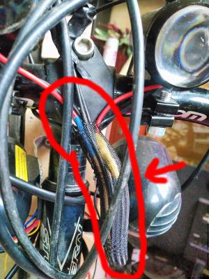 У меня пока так, всё в 2х жгутах + передний тормоз. Вчера до часу ночи не успел, может сегодня доделаю и красиво размещу по бокам рамы:
