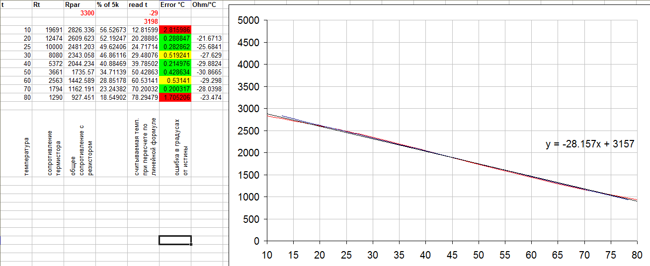 [user]Кулибин[/user], да, нелинейные. Табличка через 10 градусов и кусочно-линейная аппроксимация как самый простой вариант. Если нужно измерять в небольшом диапазоне, то можно подключить параллельно термистору резистор. Тогда общее сопротивление линеаризуется на некотором участке. Если весь диапазон, то только матан.