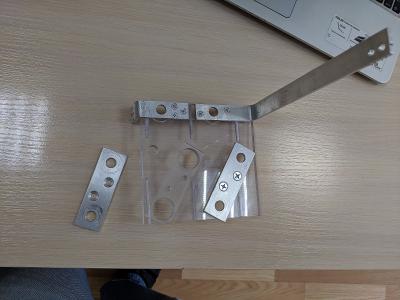 PPS: еще мне нарезали перемычек из 3-мм алюминиевого сплава Д16Т, пробовал на них собирать, плюнул - из-за вышеупомянутой кривизны поверхностей переходные сопротивления получаются ужасными, материал перемычек жесткий, не обжимается, ни капельки не подгибается, вырвал пару шпилек, пытаясь как-то посильнее притянуть.