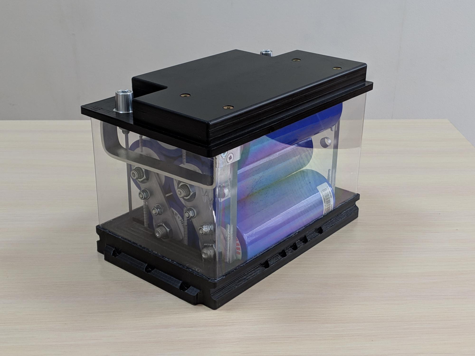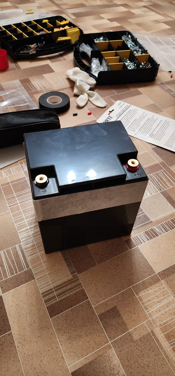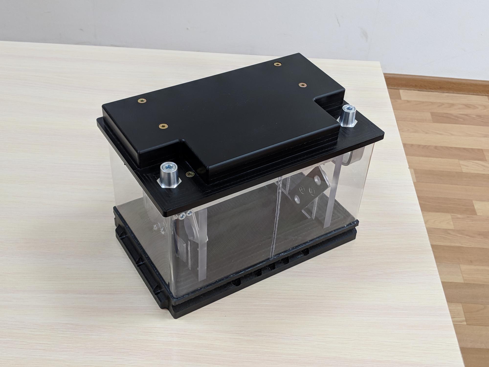 Согласен, с ручкой было бы удобнее. Клеммы из мягкого сплава сложнее обрабатывать на станке. Полярность не обозначена на корпусе, т.к. есть возможность собрать оба варианта. По размерам нижняя проекция корпуса полностью совпадает со стандартным аккумулятором 278x175x190, и немного больше его в средней части, там где прозрачный кожух.