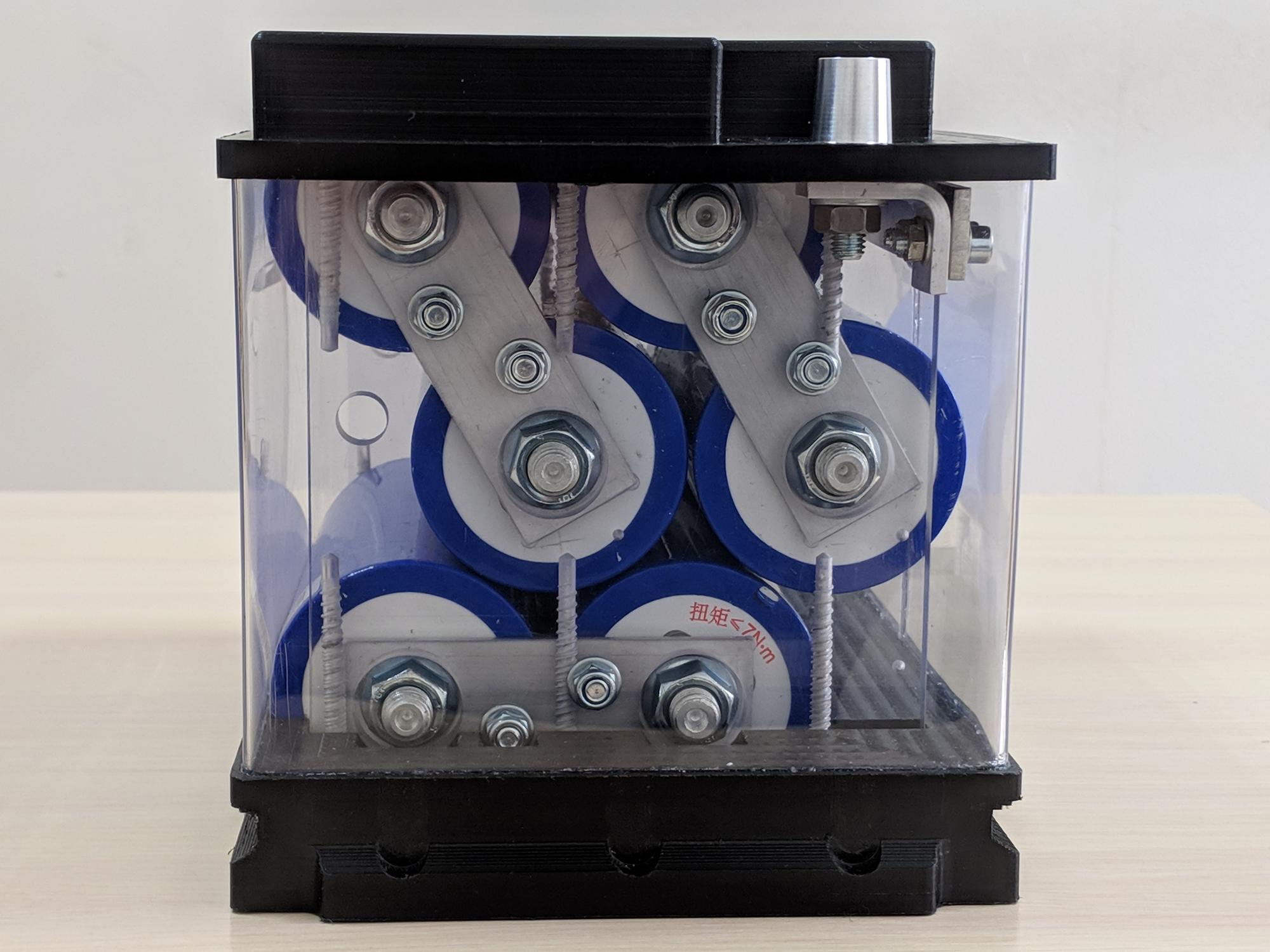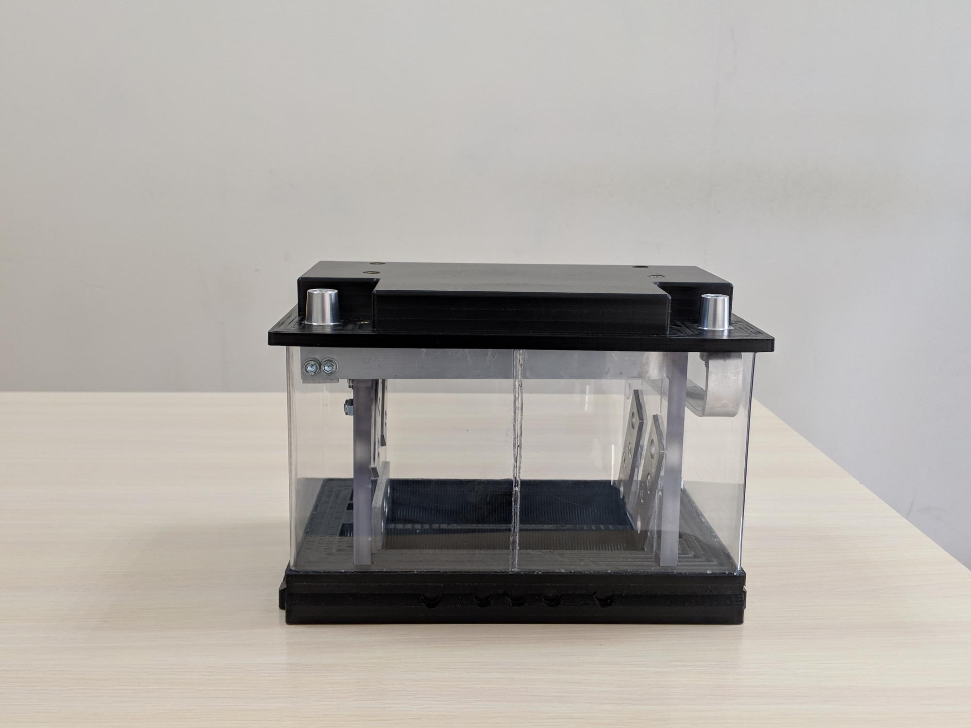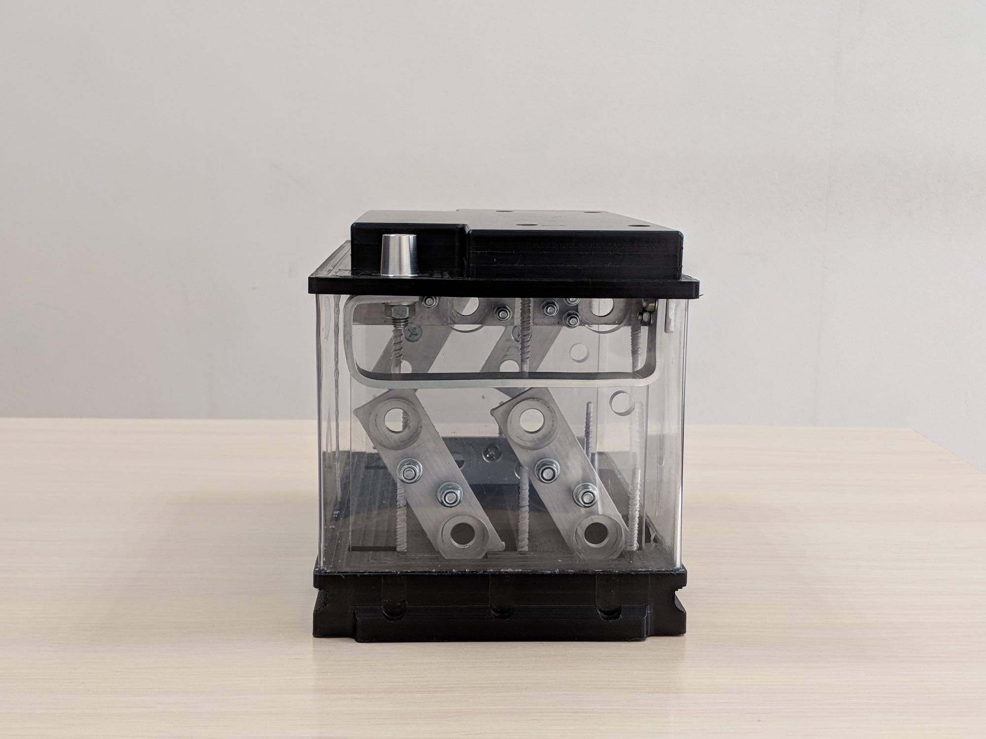 Согласен, с ручкой было бы удобнее. Клеммы из мягкого сплава сложнее обрабатывать на станке. Полярность не обозначена на корпусе, т.к. есть возможность собрать оба варианта. По размерам нижняя проекция корпуса полностью совпадает со стандартным аккумулятором 278x175x190, и немного больше его в средней части, там где прозрачный кожух.