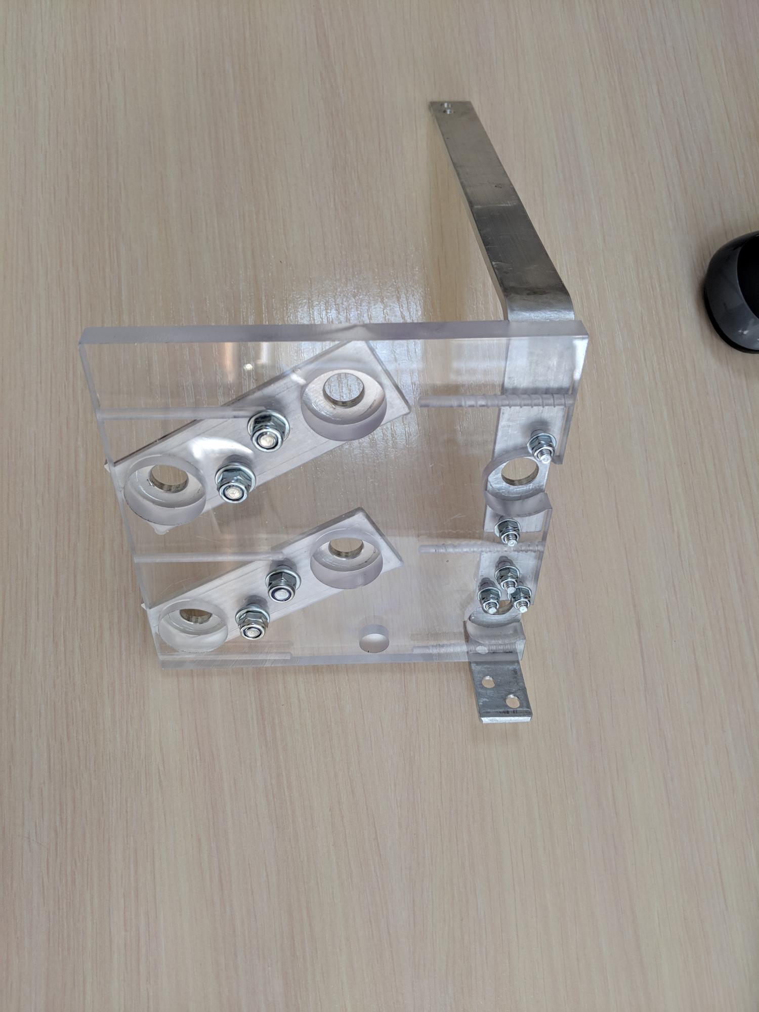 Изменили конструкцию, теперь шины встроены в корпус: сделаны пазы и стянуты винтами с гайками. Верхняя и нижняя части выполнены из полипропилена, шины и клеммы алюминиевые.
