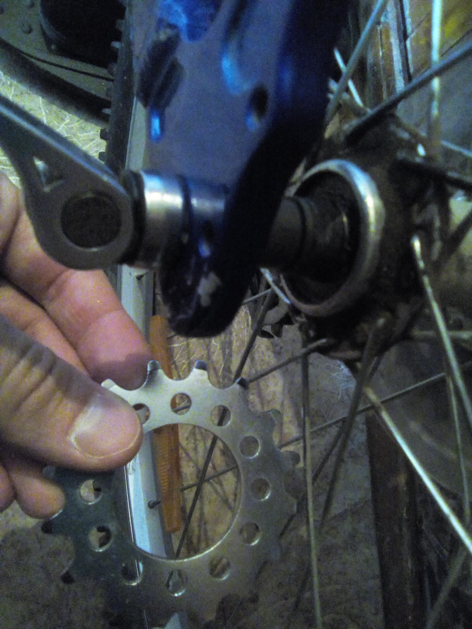 Звездочка присоединяется к втулке вместо ротора тормоза, но у меня втулка обычная, тормоза ободные.