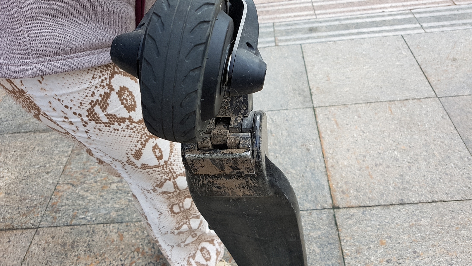 Вчера провели случайно краш-тест: попал в яму между трамвайными путями и плиткой. Как итог: на самокате несколько довольно глубоких зарапин от падения на скорости около 15км/ч со мной сверху, отлетела заглушка на одной ручке, так ее и не нашел. У меня ушиб локтя и пару Сажин, хорошо отделался без перелома. Так что будьте осторожны, лучше не штурмовать препятствия, колёсики все же маленькие.
