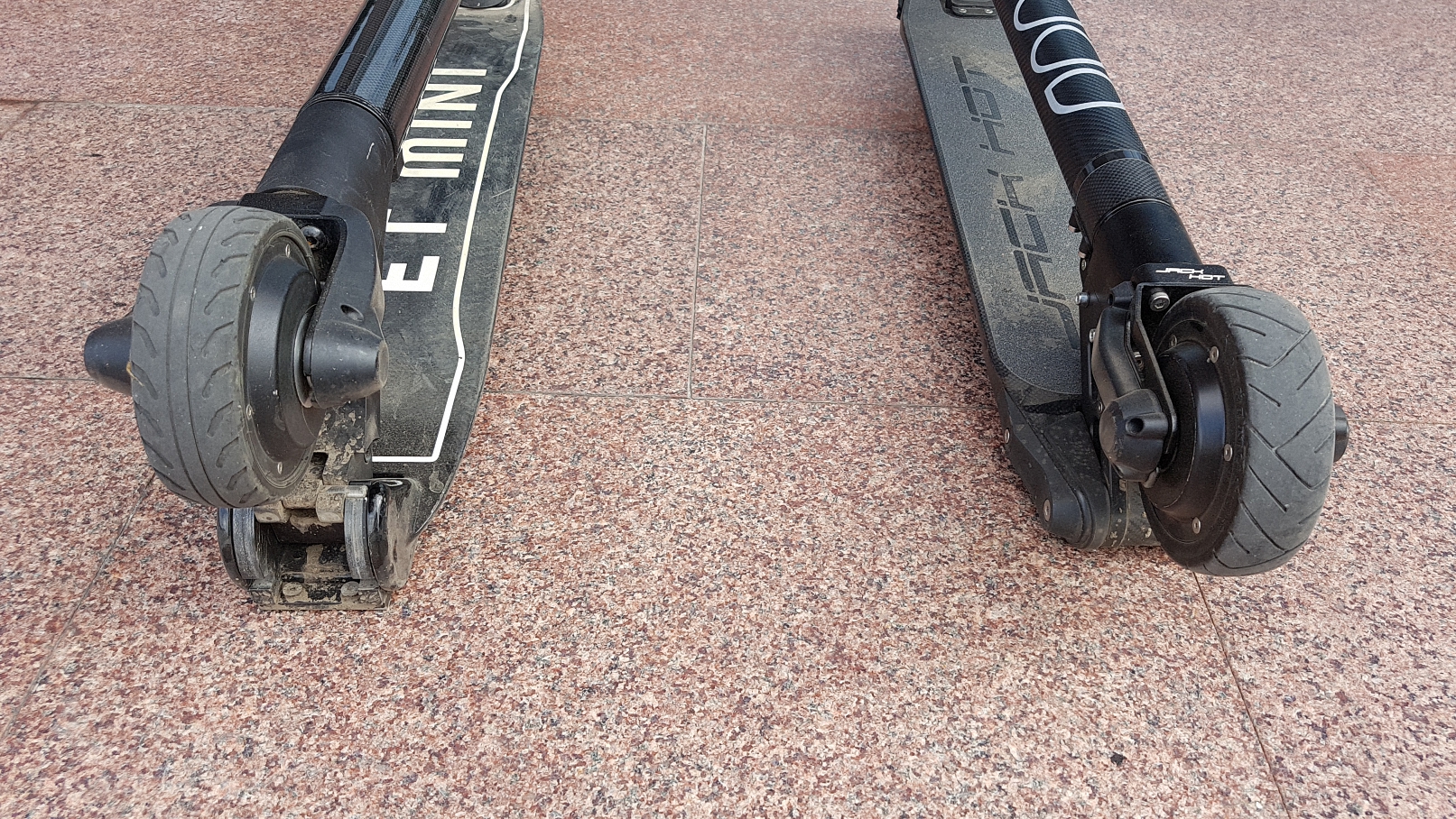 впечатления от ET-MINI самые положительные, самокат значительно динамичнее Джек Хота, но ему не хватает для полного счастья амортизатора e-carbon II