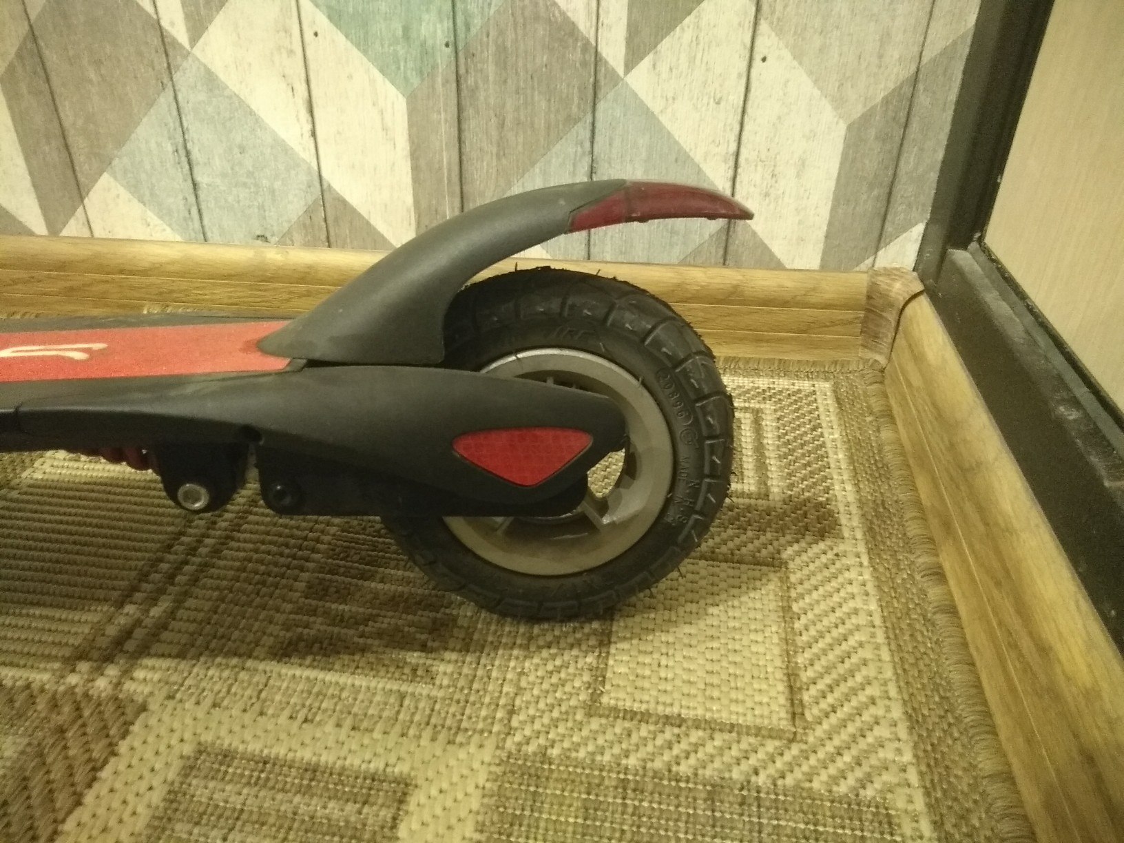Поменял заднее колесо на надувное, 6 дюймов. Оно уже родного ( было заказано изначально широкое, но оно не влезло по диаметру, хотя тоже заявлялось как 6 дюймов)  но едет хорошо. По ощущениям стало еще менее тряско.  Заодно решилась проблема с небольшим количеством брызг, которые все же шли из под заднего крыла - теперь колесо уже, их нет.
