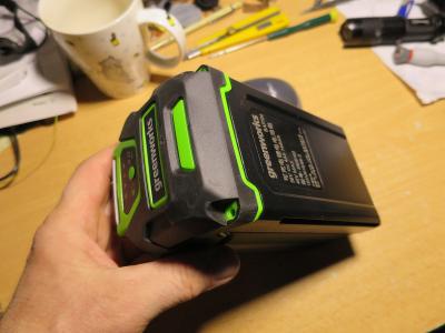 Аккуратно располовинил термоусадку на батарее. И отрезал верхнюю крышечку.