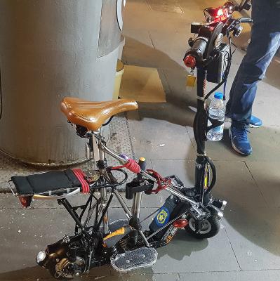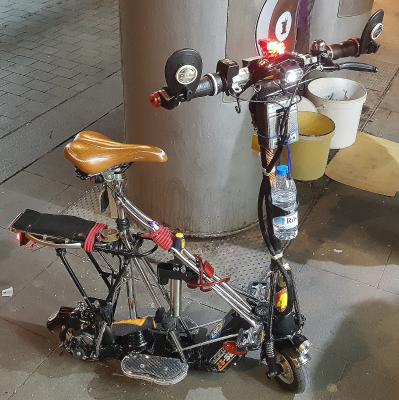 Забавный электроагрегат заметил,гуляя по Барселоне. Правда,педалей нет  ,хотя не,педали то есть,вопрос -зачем? :pardon: