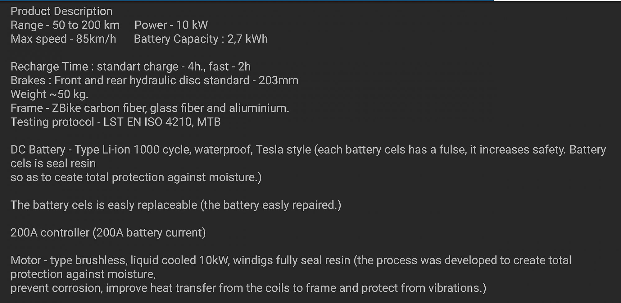 Литовцы делают интересный байк, с карбоновой рамой и моторколесом с водяным охлаждением. Но блин, зараза , пипец какой дорогой!