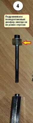 6.Подравниваете полиуретановый демфер (иногда он не ровно отрезан), чистите если нужно от метал. стружки верхнюю часть рулевой стойки, - под демпфером у меня было много  ее