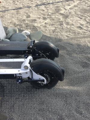 • Хороший клиренс, большинство бордюров преодолевается простым приподниманием переднего колеса. Вообще преодолевать бордюры на нём мне нравится больше, чем даже на велосипеде. Снижаю скорость, спрыгиваю, спускаю с бордюра, запрыгиваю на самокат и газ. Потеря времени минимальная.