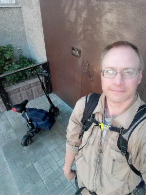 Кстати, самокат, как известно, весит около 15кг и очень удобен в переноске. По крайней мере для меня. Сложил и схватившись чуть ближе к заднему колесу за сложенный роль - понес куда надо.