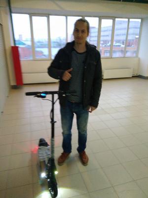 Скатался в Москву  забрал свой миник, спасибо Алексаедру и Андрею кто выдавал самокаты. Выехал в 3 ночи спать не ложился, приехал к открытию к 10-ти, почти пьяный. Вечером вернулся назад . После дождя сухую площадку нашел возле стадиона . покатался немного, ноги подкашиваюся после 40 км/ч . Прокатил сестру она говорит ног не чувствует. Вторая пищит, страшно впереди стоять и тоже ноги...  Блин думаю , че так всегда будет, репу чешу...  Но это похоже была моя усталость... Сегодня покатался все отлично ноги не подкашивались.  Выкладываю фото.