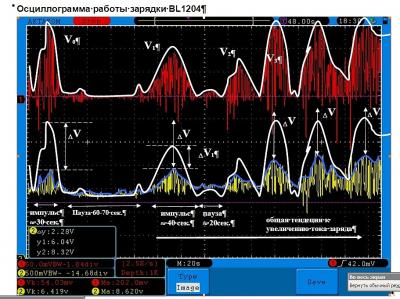 Ну 100 Гц не 100 кГц, но нужно понимать, все же нам интересна амплитуда импульсов, или среднеквадартичное значение. Мне думается, что все же амплитуда таких коротких импульсов не важна для аккумулятора. Думаю, что и БЛ не парится над амплитудой импульсов, а их амплитуда растет по мере заряда аккумулятора как производная функция. К примеру если вы возьмете импульсный источник, который стабилизирует среднеквадратичное (или средневыпрямленное) значение тока, то по мере заряда аккумулятора амплитуда каждого импульса будет увеличиваться. ;) Думаю, что именно это вы и видите на осциллограмме.