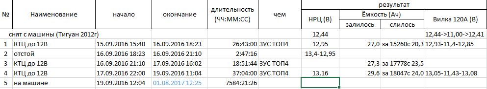 Цитата: g-yur от 01 Авг. 2017 в 11:09Кстати, про Banner. Дело имел только с одним четырёхлетним 72Ач , который коллега высадил зимой не дизельном Тигуане. После отогрева НРЦ=12,44. Проверил - 20Ач. Сделал 3 КТЦ на ЗУС4, емкость раскачалась до 24. Думаю, что если бы времени было больше, то прибавка была больше. Короче, однозначно лучше Боша.