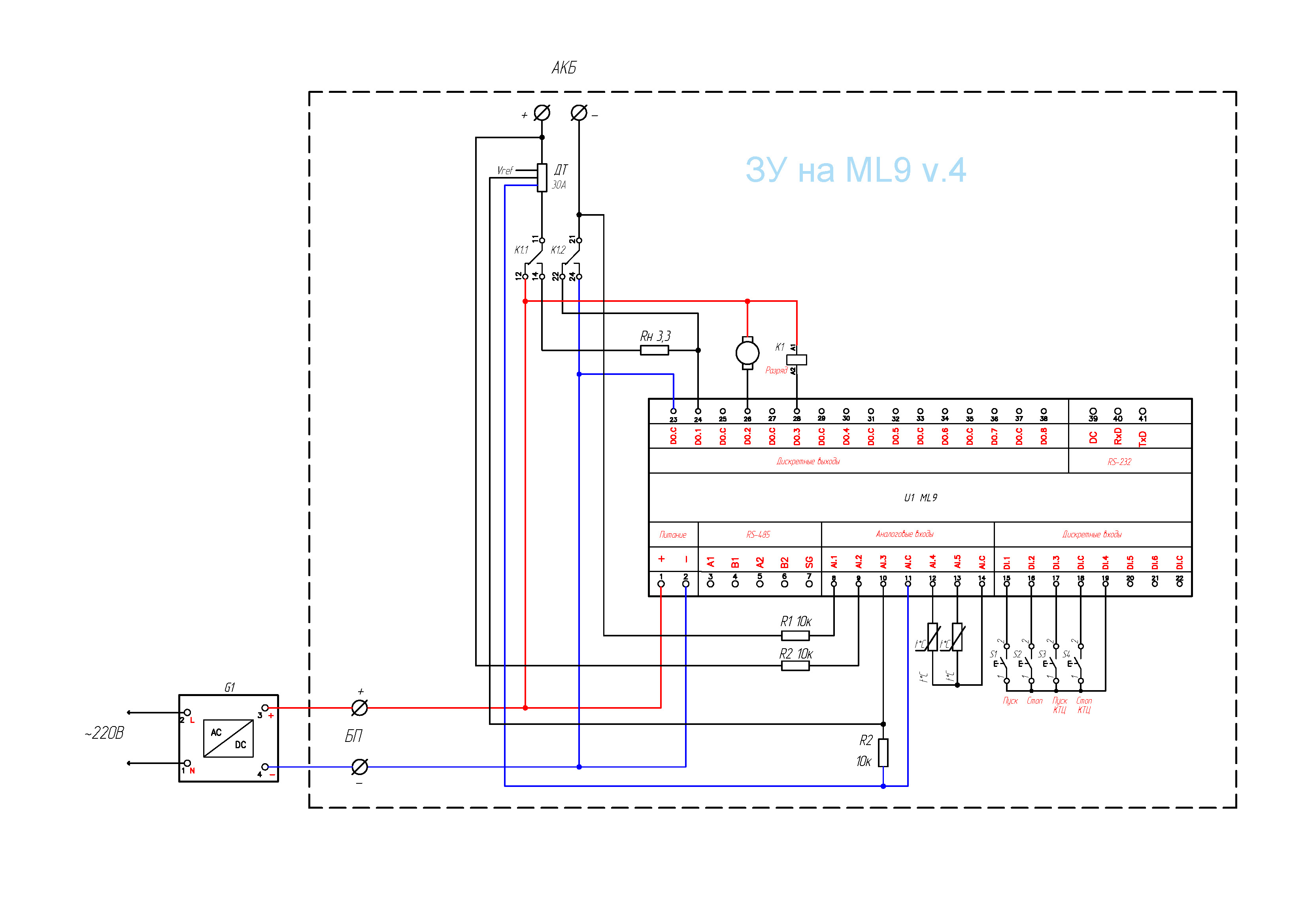 [user]Кass[/user], не стыкуется схема с фото стенда. Клемма 10 ПЛК. 11 это общий? А куда с датчика тока? Кнопки на схеме и на фото? Маленький кондер куда? На ДТ?