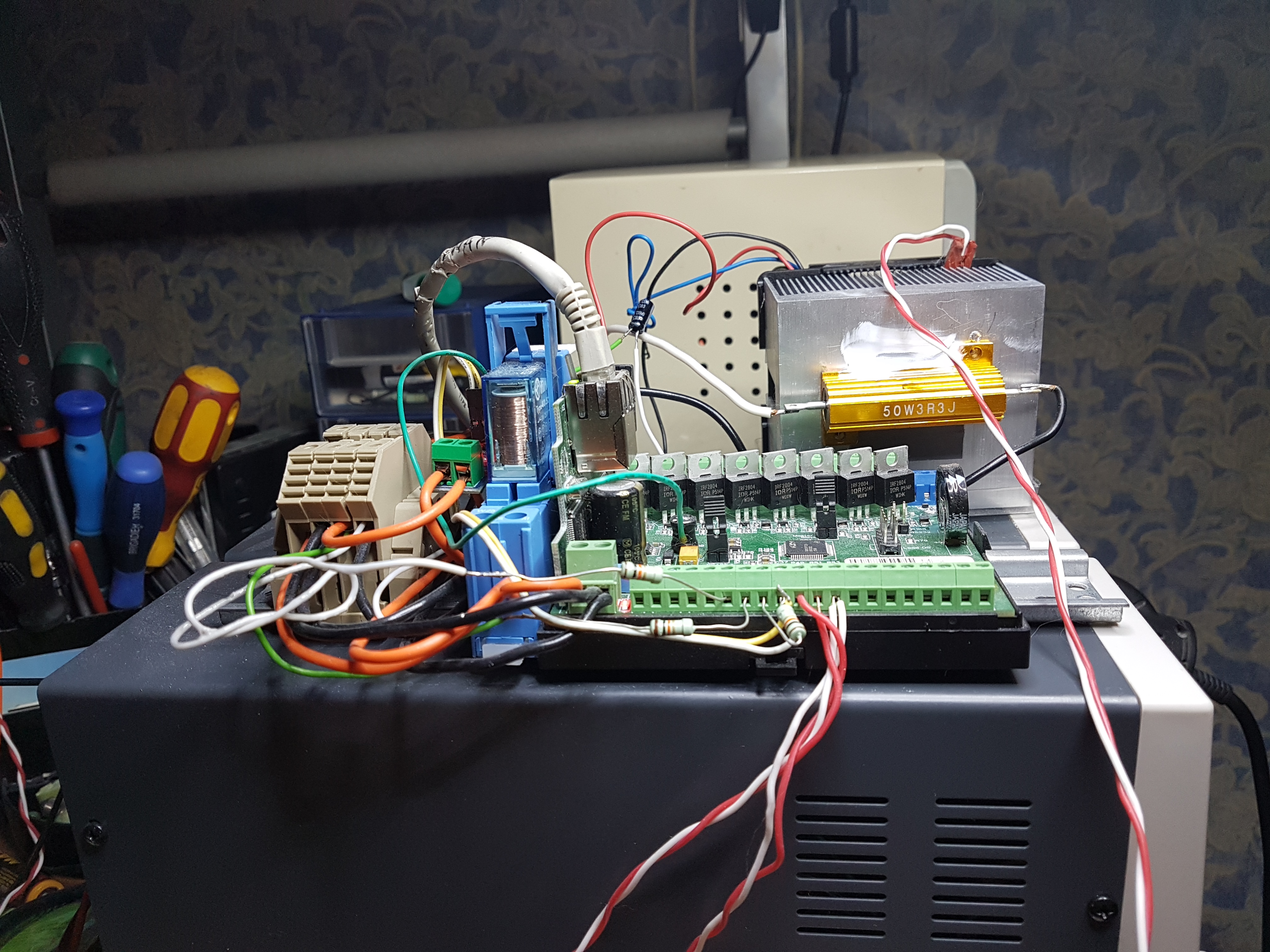 Все кроме радиатора собрано на DIN рейке. В принципе изначально хотел вставить в пластиковый бокс с прозрачной дверцей, одев на морду контроллера пульт. Сейчас уже есть мысли другие.