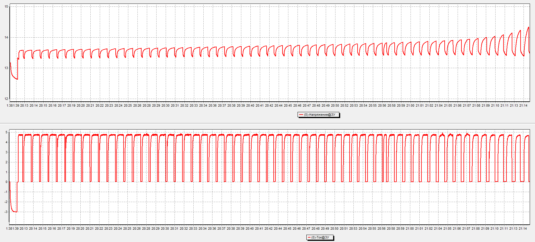 Закончен разряд и автоматом перешел на заряд. Выкладывают графики с консоли, которая получается данные в доли секунды.