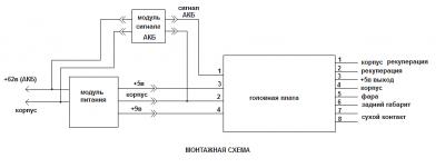 Подключается к заднему габариту.