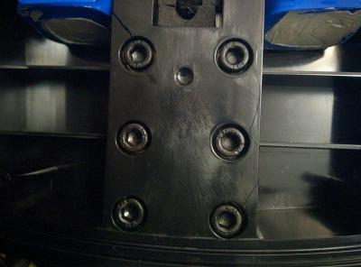 Ниже под спойлером то, с чем рано или поздно столкнется народ со слонами 18+ года (пара фоток из заслона). Это еще, кстати, лайтово треснул (видно вовремя обнаружили трещины) - у некоторых вообще до самого низа корпуса трещины идут, так, что корпус свободно гулять начинает (если рукой пошевелить это место) и у колеса при попытке ехать на нем уже идет некислый тремор (начинает дергать).