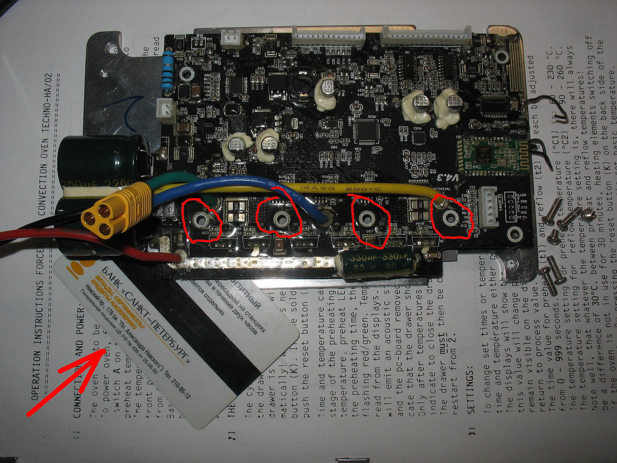 Примерно так, винты транзисторов обвел красным, стрелка - как вставлять карточку.