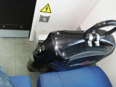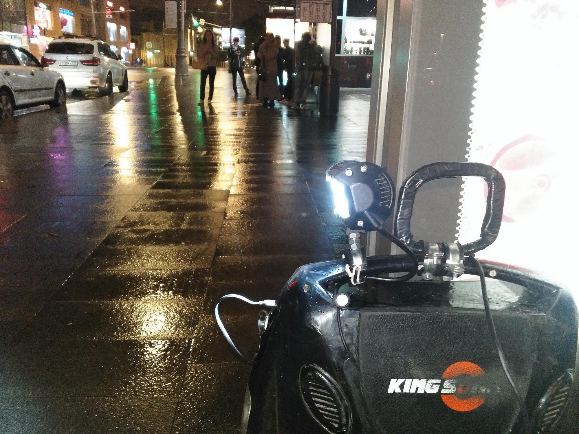 Очень не хватает ручки.......буду делать раскладывающуюся (вариант с кабелем и изолентой колхоз какой то), свет, действительно светит в глаза прохожих, а никак не на дорогу(буду его отключать и ставить нормальный фонарь, благо место позволяет)