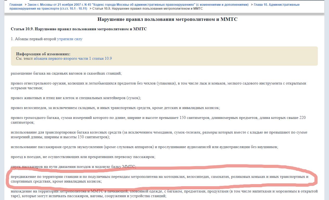 Ещё один. Ты хоть сам понял что написал? Ахинея какая-то. Самокат не считается транспортным средством и проход с ним на территорию метрополитена не запрещён, а запрещено ПЕРЕДВИГАТЬСЯ на самокате по метро.