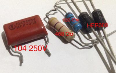 PS Это я рекомендовал в начале темы брать 0.1 х 400В, картинка нарисована мной. Позже, пришел к выводу что 0.1 даже много, 10 нФ работает лучше.