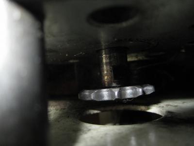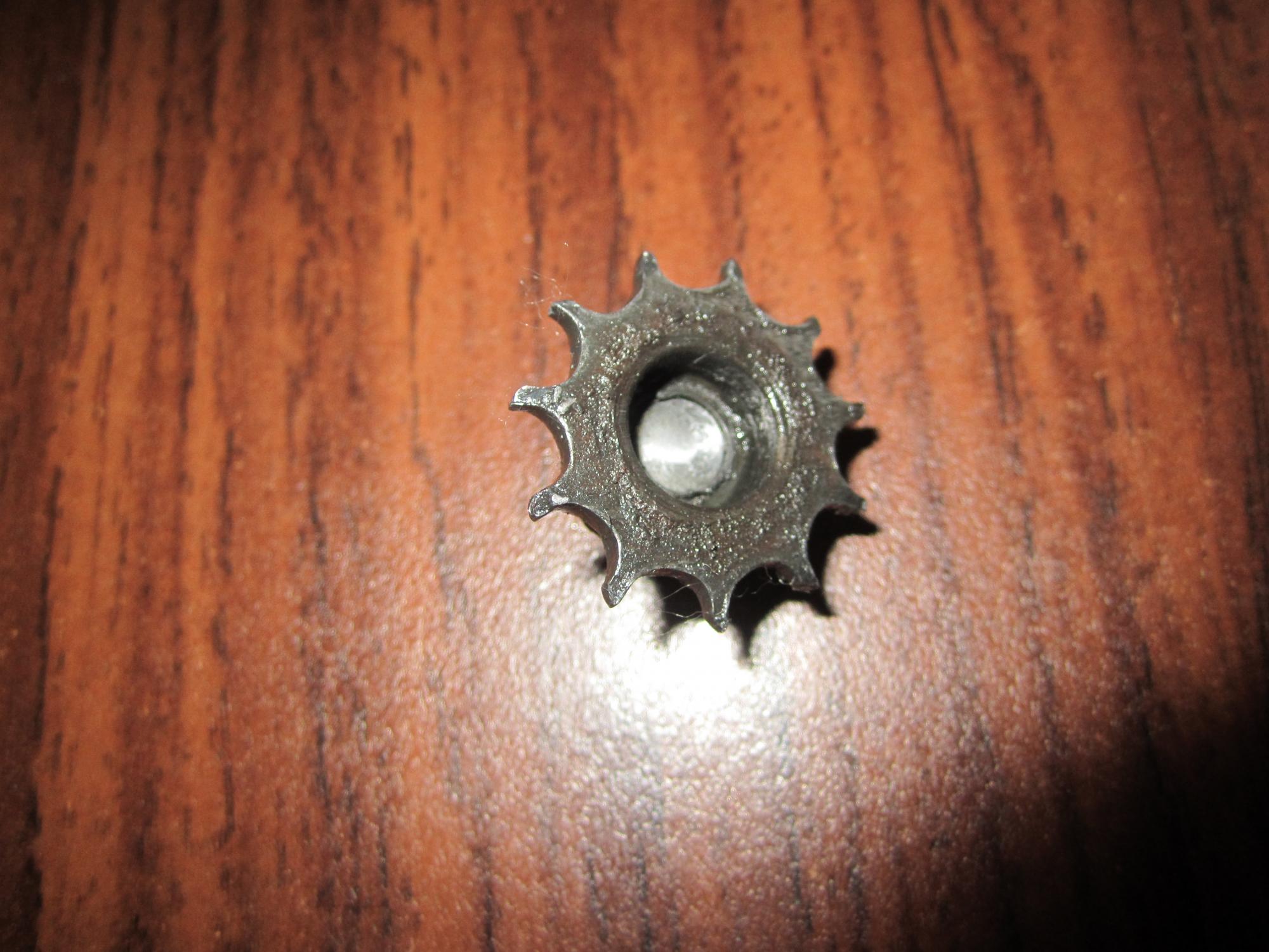 Добил таки звезду  /:-) , крутил вертел, пыхтел в результате сама снялась с вала мотора, на нем видно, что есть резьба под звезду и нет резьбы под гайку, состояние мотора технически исправен, только резьбу сделать на валу, наверно цепь от этого и слетала, что в разные стороны гулял. Износ звезды максимальный.