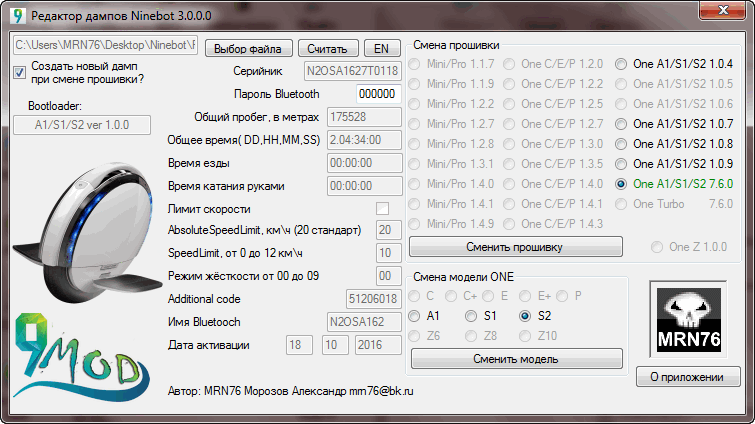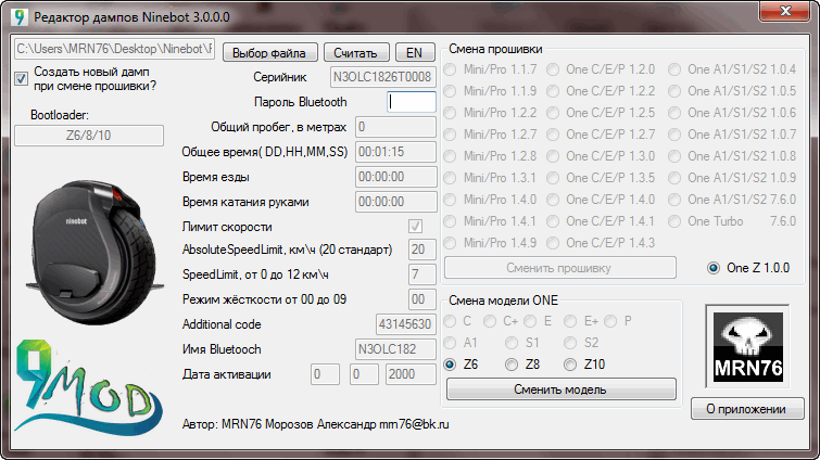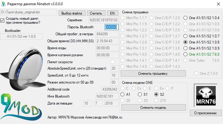 ninetool Программа для работы с прошивками моноколёс ninebot