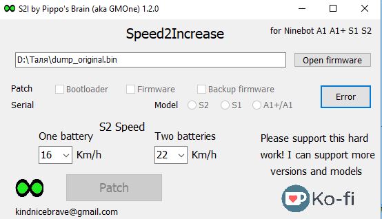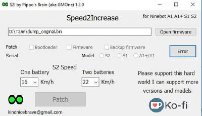 Доброе время суток. Читал ваши посты на форуме. У меня S2 Ninbot one Хочу убрать лимит скорости. Для этого нужно меня ть прошивку или можно скачать данные с чипа потом поставить галочку у вас в программе Лимит скорости ?Если нужно прошивать то где брать прошивки на мое колесо. Спасибо за ответ.