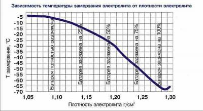 Напомню "специалисту" вот этот график, который отчётливо показывает для ДВ сверху рабочая плотность в акб в идеале должна быть всего лишь не ниже 1,23 для пограничной зоны в -40 ниже ноля.